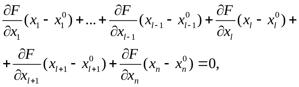мерное касательное линейное многообразие к мерному множеству в точке есть пересечение («штук») мерных касательных плоскостей в точке к множествам нулевого уровня функций Следовательно, мерное касательное линейное многообразие к мерному множеству в точке описывается следующей системой («штук») линейных алгебраических уравнений: