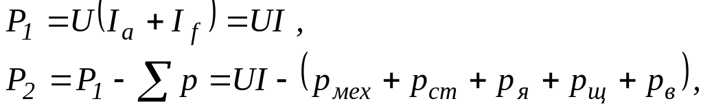 где pмex+pcт= pпост=P10/2 – механические потери и потери в стали якоря; P10=U.I – мощность холостого хода при невозбужденном синхронном генераторе; pя=Ia2Ra – потери в цепи якоря; pщ=Uщ .Ia – потери в щеточном контакте (падение напряжения на щетках Uщ=0,5 В; pв=Uов.If – потери в цепи возбуждения.