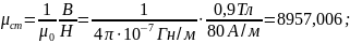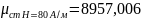 Визначимо статичну і динамічну проникність при напруженості магнітного поля H = 80 А/м.