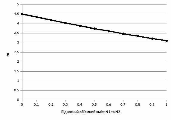 Графік залежності діелектричної проникності діелектрика від складу (послідовне включення компонентів)