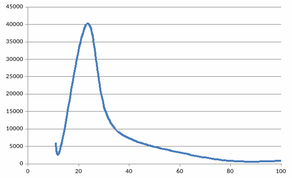 Графік залежності діелектричної проникності діелектрика від складу (хаотичний розподіл компонентів)