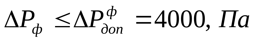 Фактические потери давления в фильтре определяются по формуле