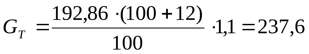 1. Необходимое количество теста Gт кг/ч, вычислим по формуле: