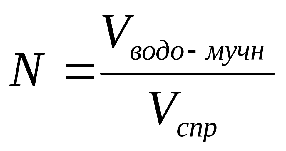 где Vспр - объем емкости для приготовления водо-мучной смеси по справочнику (Vспр = 300)