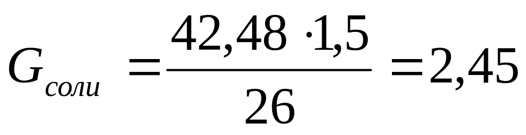 5. Количество солевого раствора на замес Gсоли., кг, вычисляем по формуле: