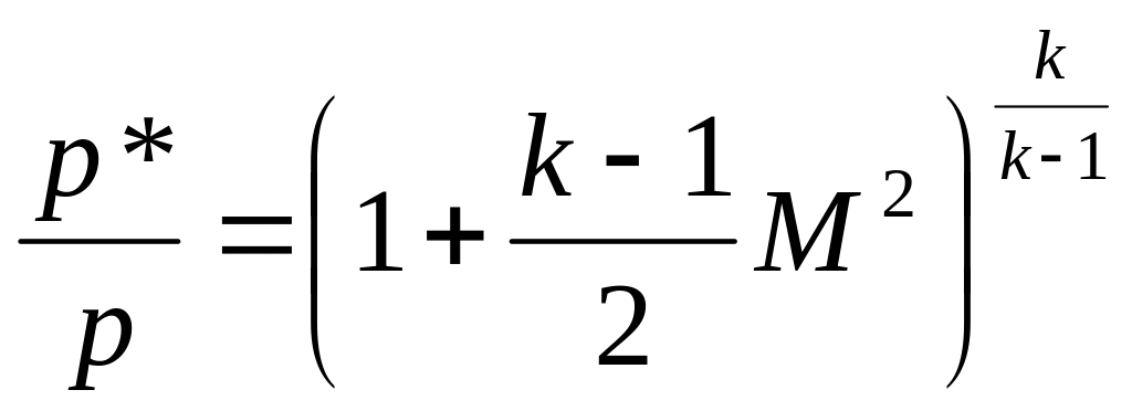 Используя выражение (2.26), связывающее скорость звука с параметрами состояния газа, получим формулу для вычисления давления в идеально заторможенной газовой струе, в функции давления (р) и числа М перед торможением