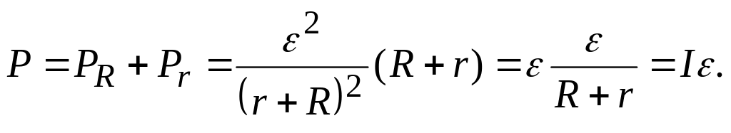 Аналогично выражается бесполезно теряемая мощность Pr, выделяющаяся внутри источника на его сопротивлении r: