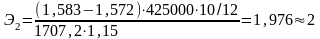 Э1 = (2,1 – 2,024) * 425000 * 10/12 * 740,3 / 1000 = 19,846 (тыс.грн.)