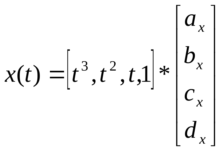 Параметр t лежит в пределах от 0 до 1. Нам необходимо знать все коэффициенты уравнений, чтобы однозначно определить положение кривой в пространстве. В определении коэффициентов всегда используют производные.