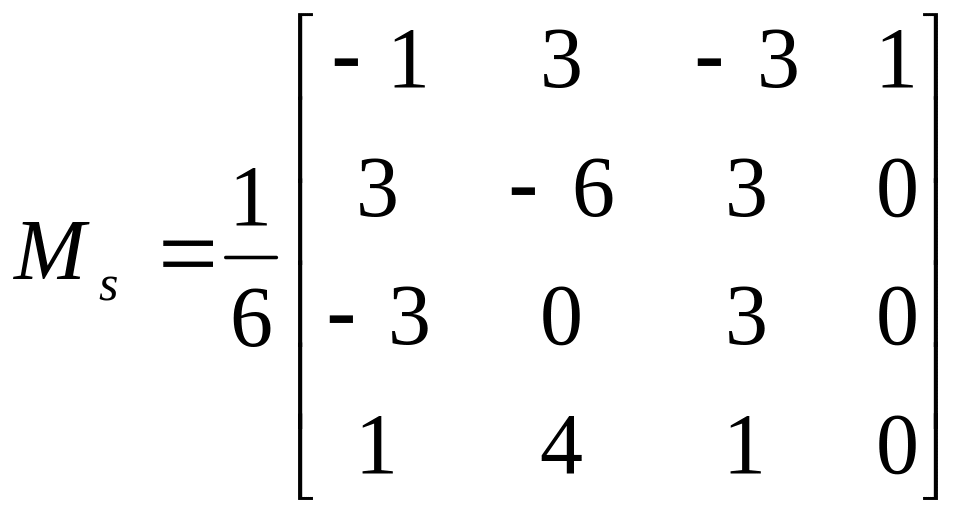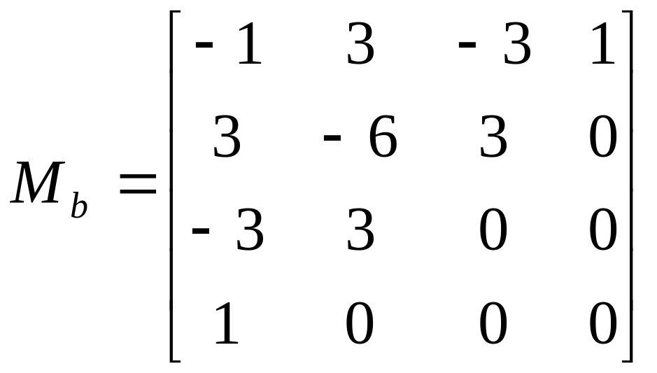 Запись уравнения В-сплайна отличается матрицей в формуле стоящей на втором месте и заданием векторов.