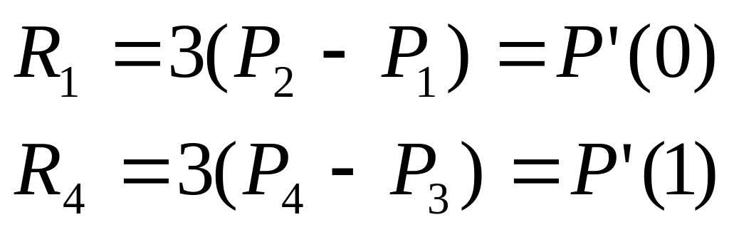 Исходные данные – координаты точек P1, P2, P3, P4. Математически вывели, что касательный вектор определяется по формуле: