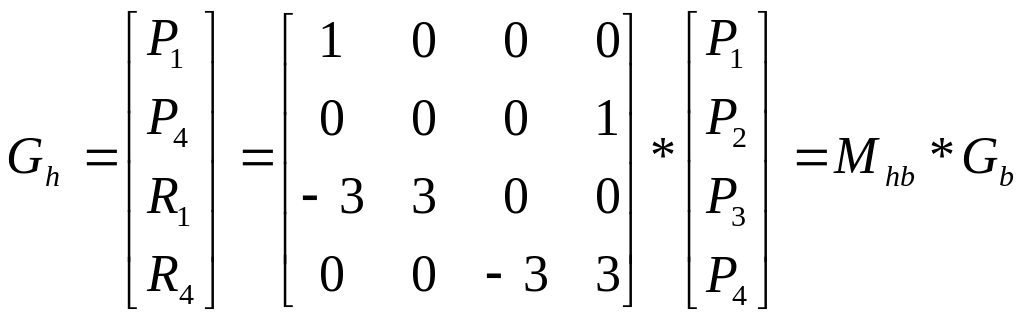 Таким образом, матрицы Mh(цифровая)b, Mb – числовые. В Gb подставляем координаты четырёх точек и получаем пространственное представление кривой третьего порядка.