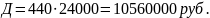 Првал =10560000 – 7409134 – 1610400 = 1540466 руб.