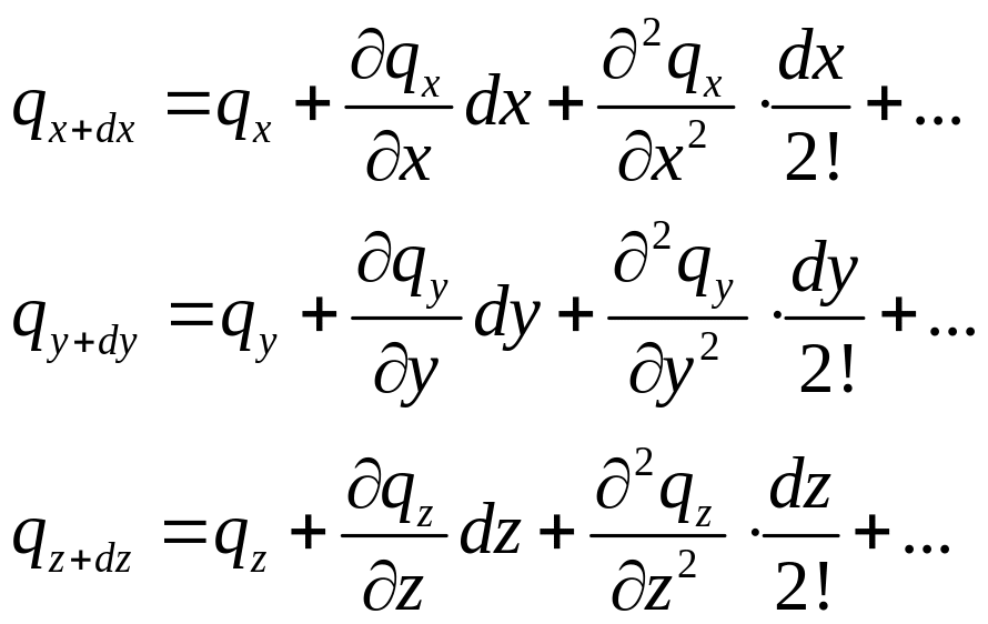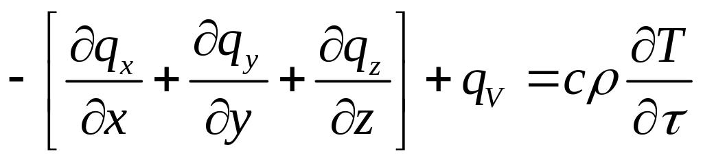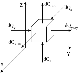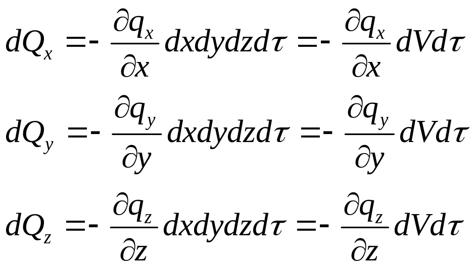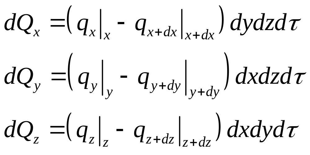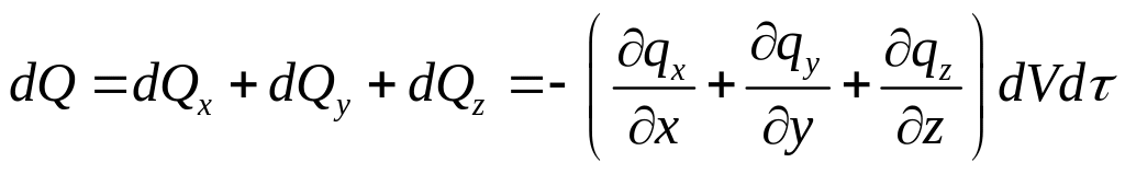Разница между количеством теплоты, подведённого к dV за d и отведённого в направлениях Ox, Oy, Oz может быть выражено:
