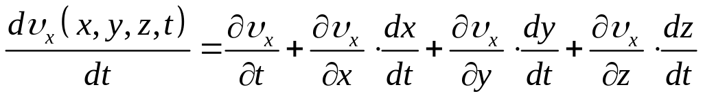 Разложим вектор скорости: x (x,y,z,t),y (x,y,z,t),z (x,y,z,t)