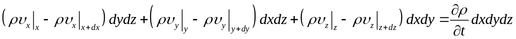 Это выражение равно алгебраической сумме потоков массы входящих и выходящих через шесть граней куба: