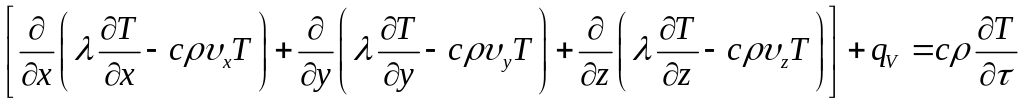 В общем случае теплопереноса (с учётом конвективного и диффузионного механизмов переноса тепла) компоненты теплового потока qx, qy, qz, могут быть представлены: