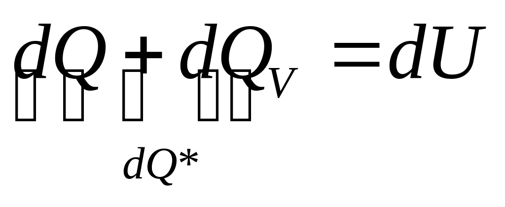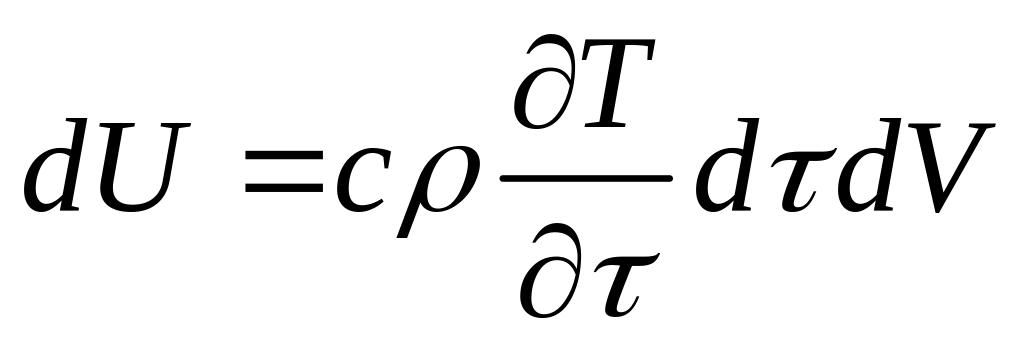 Количество тепла, подведенное к элементарному объёму dV за время d (это dQ*), равно изменению внутренней энергии вещества (dU), содержащегося в данном объёме: