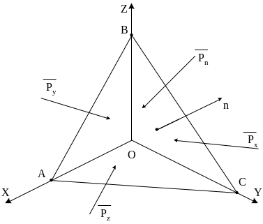 Аналогично поверхностные силы будут задаваться своей плотностью распределения, называемой напряжением.