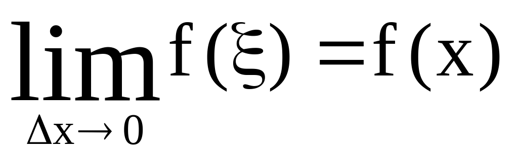 где ξ- число заключенное между числами x и x+∆x.Поскольку ф-ция f(x) непрерывна в точке x , то при ∆x→0 f(ξ)→f(x). Поэтому из последней формулы находим