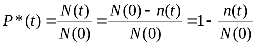Выражения (1) и (2) являются соответственно вероятностным и статистическим выражениями вероятности. Здесь и далее статистические оценки числовых характеристик надежности будут помечаться звездочкой.