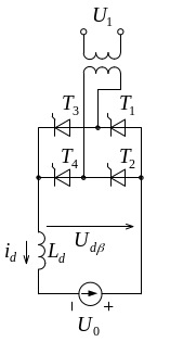 Учитывая отмеченные особенности; индуктивность сглаживающего реактора при инвертировании тока следует выбирать гораздо больше, чем при выпрямлении.