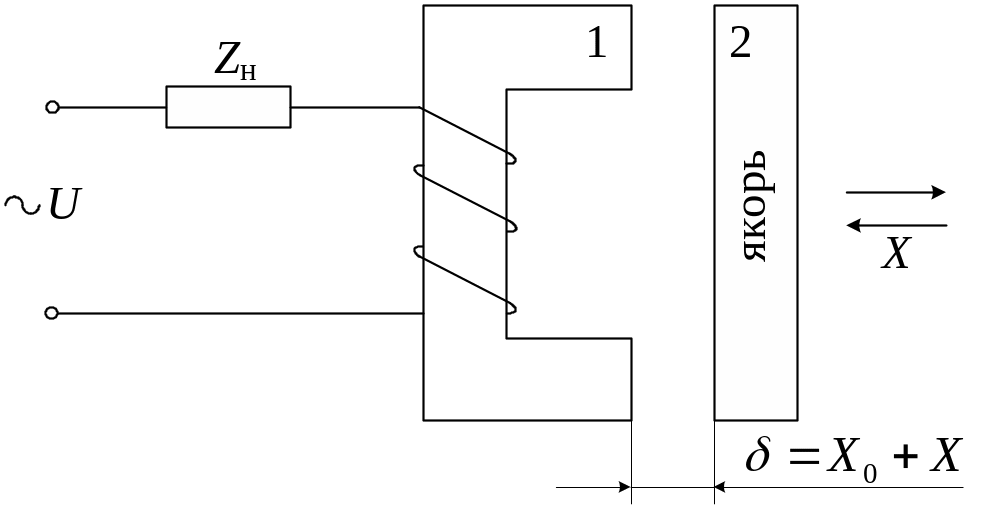 Так как воздушный зазор δвозд = Хо+Х состоит из начального зазора Хо и и переменной величины Х, определяемой перемещением якоря, то формула (1) преобразуется к виду: