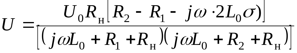 Для датчика с симметричными параметрами при напряжении питания U=U0sinωt на основании формулы (7) выходное напряжение