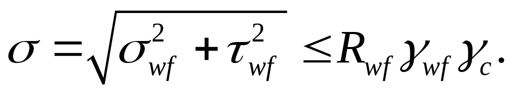 Равнодействующее напряжение в шве должно удовлетворять условию
