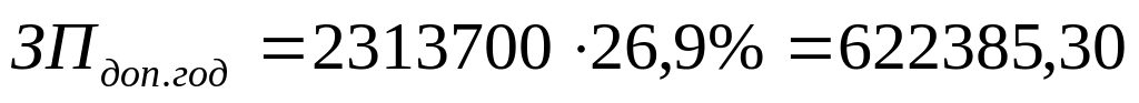 Годовой фонд дополнительной заработной платы производственных рабочих включает оплату основных и дополнительных отпусков, оплату времени выполнения обязанностей и другие выплаты, предусмотренных законодательством о труде.