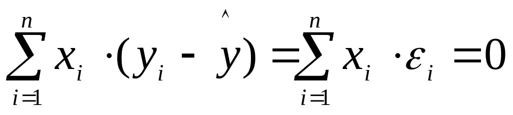 т. е сумма квадратов ошибок оценок переменной у (остатков модели) при оптимальных параметрах регрессии а и b равна нулю.