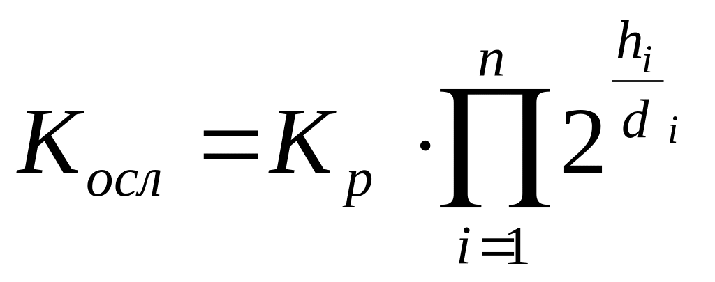 Кослсх.= 2⋅Косл бет. ⋅Косл гр = 2⋅24⋅25 = 2⋅16⋅32 =1024 Порівнюються захисні властивості з необхідними ∆Рф.зах = 100 кПа і ∆Рф.необх = 40 кПа Косл.сх= 1024 і К осл.необх= 1000.