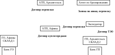 По оптимальному маршруту представлена схема взаимодействия участников и основные документы, оформляемые ими.