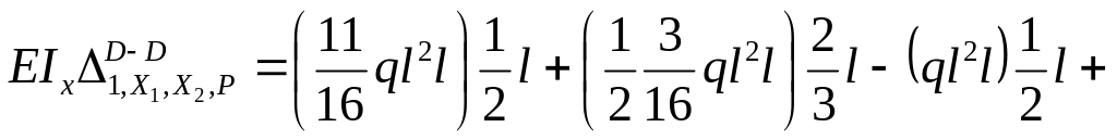 Физический смысл уравнения ( 9 ) – горизонтальное перемещение сечения D от заданных нагрузок и неизвестной силы X1 должно равняться нулю.