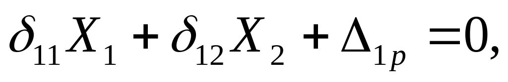 Физический смысл первого уравнения системы – взаимное горизонтальное перемещение левого и правого сечений в месте разреза под действием всех сил, включая неизвестные, равно нулю. Второе уравнение отражает аналогичное условие для взаимного вертикального перемещения сечений.