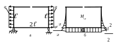 6. Грузовую систему получаем, нагружая основную систему заданными внешними нагрузками (рис.25а). Определяем опорные реакции и строим “грузовую” эпюру (рис.25б).