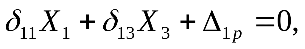 Физический смысл первого уравнения системы – взаимное горизонтальное перемещение левого и правого сечений в месте разреза под действием всех сил, включая неизвестные, равно нулю. Второе уравнение отражает аналогичное условие для взаимного вертикального перемещения сечений. В третьем уравнении отражается требование равенства нулю взаимного поворота левого сечения относительно правого в месте разреза.