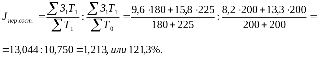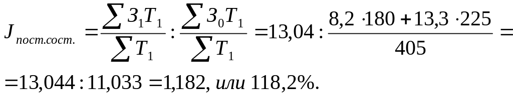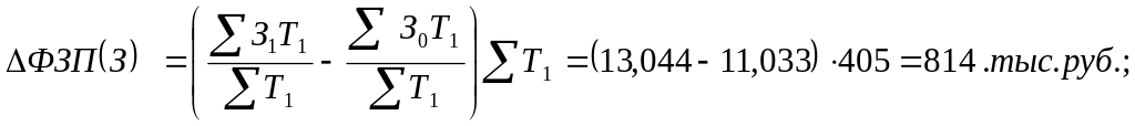 Абсолютный прирост фонда заработной платы за счёт изменения средней заработной платы по заводу может быть представлен как сумма его прироста за счёт изменения заработной платы по каждому цеху и за счёт изменения в структуре численности персонала: