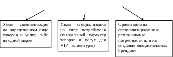 сосредоточение деловой деятельности на локальных и местных рынках, ориентацию на взаимодействие с местными потребителями, отсутствие амбиций превращения собственного бизнеса в значимый феномен национального рынка;