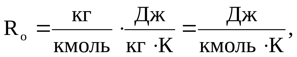 Таким образом, удельная газовая постоянная определяется как работа изменения объема совершаемая газом массой 1 кг при Р = const, если изменить температуру на 1 К или 1 ºС, а т.к. Ro = μR, то