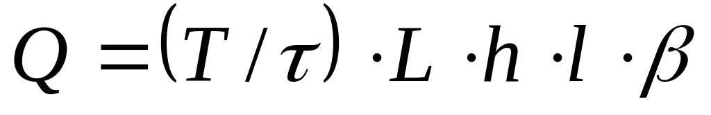 Продуктивність Q однієї парильної ями за певний період Т визначається залежно від терміну обробки , розмірів ями ( L-довжина, h-висота), довжини оцупків l та заповненості ними агрегату: