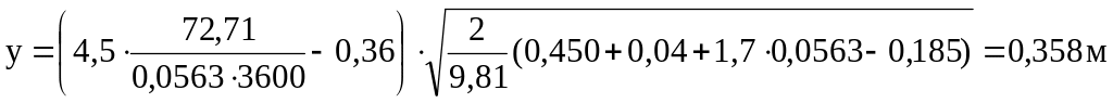 Величина вылета ниспадающей струи в переливе находится по формуле: