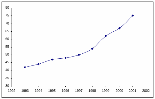 4. Выполним прогноз до 2003 года. Подставляя следующие года в уравнение регрессии получим:
