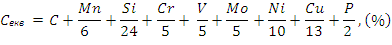 Основним елементом, який збільшує загартовування сталей є вуглець. Вплив інших легуючих елементів, які знижують швидкість розпаду аустеніту, може визначити перерахуванням їх вмісту в сталі в еквівалентно діючу кількість вуглецю. А саме: