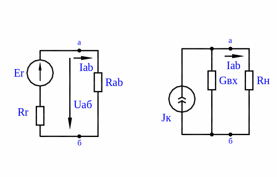 Активный двухполюсник можно представить схемой эквивалентного источника тока: