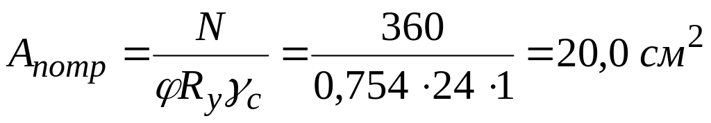3. За формулою (7) визначаємо необхідну площу перерізу