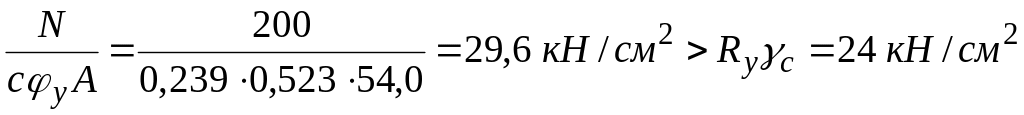 Перевірений стержень не стійкий у площині дії згинального моменту.