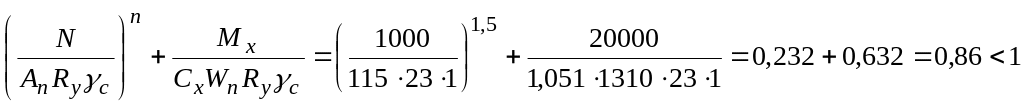Стійкість у площині дії згинального моменту перевіряється за формулою