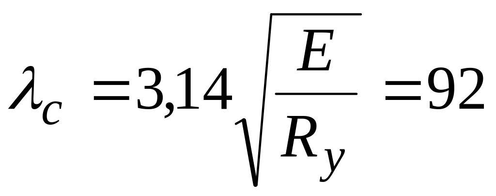 3. За формулою із додатка 9 СНиП ІІ-23-81* обчислюємо умовну гнучкість у площині згину