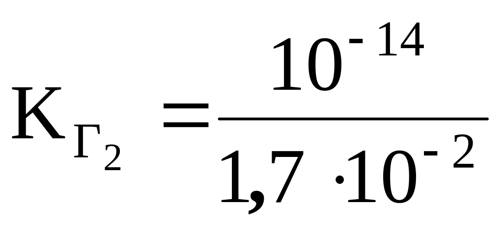 Из ионов только Zn2+ будет подвергаться гидролизу, так как является ионом слабого основания Zn(OH)2 (см. Кд в табл. 1). Ион Zn2+ – многозарядный, поэтому гидролизуется по ступеням соответственно ступенчатой диссоциации основания. Каждая ступень характеризуется величиной КГ и h. Так, гидролиз Zn(NO3)2 может быть выражен уравнениями: